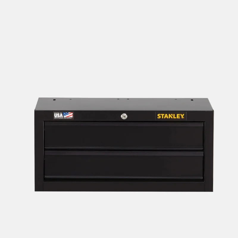 Boîte à outils Stanley à 2 tiroirs, fabriquée en acier et aluminium pour une structure robuste et résistante à l’usure. Elle dispose de deux tiroirs verrouillables permettant un rangement organisé et sécurisé des outils. Ses dimensions sont de 66 cm de largeur, 29 cm de profondeur et 30 cm de hauteur. Elle est livrée avec deux clés pour le verrouillage.