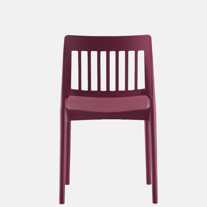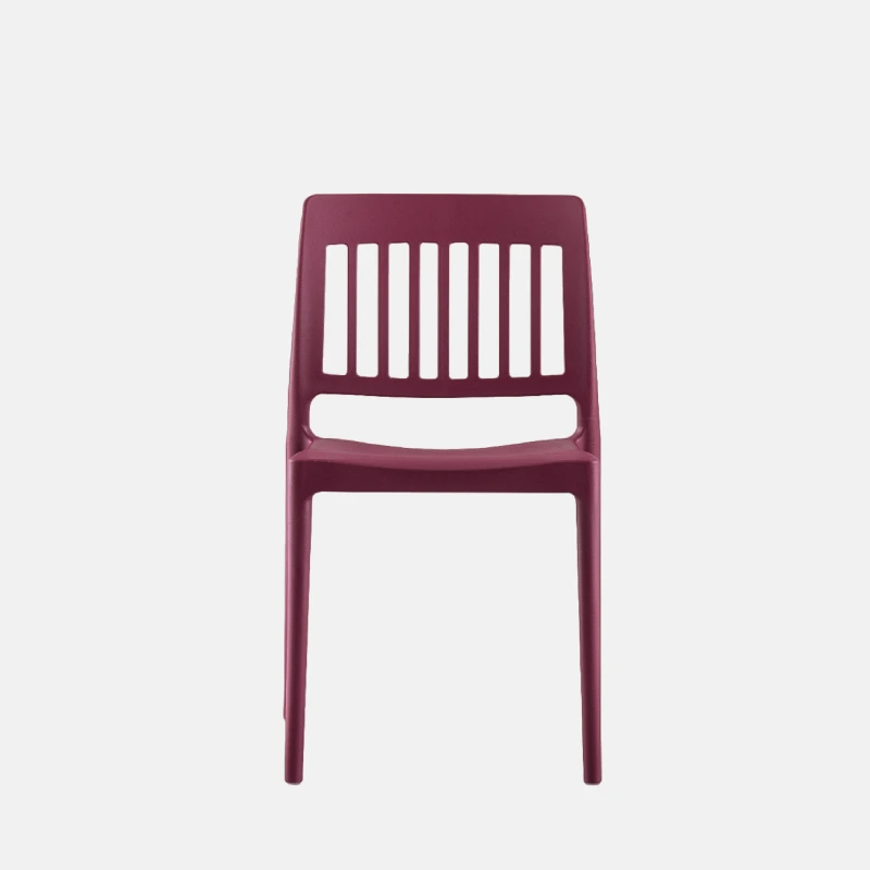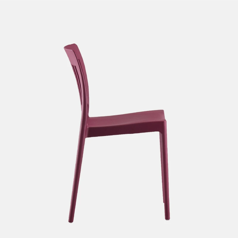 La chaise est constituée d’un cadre en plastique monobloc, sans joints visibles, ce qui lui confère une allure lisse et épurée. Les lignes sont simples et fonctionnelles, avec une assise plane et un dossier légèrement incliné pour un confort minimal mais efficace.