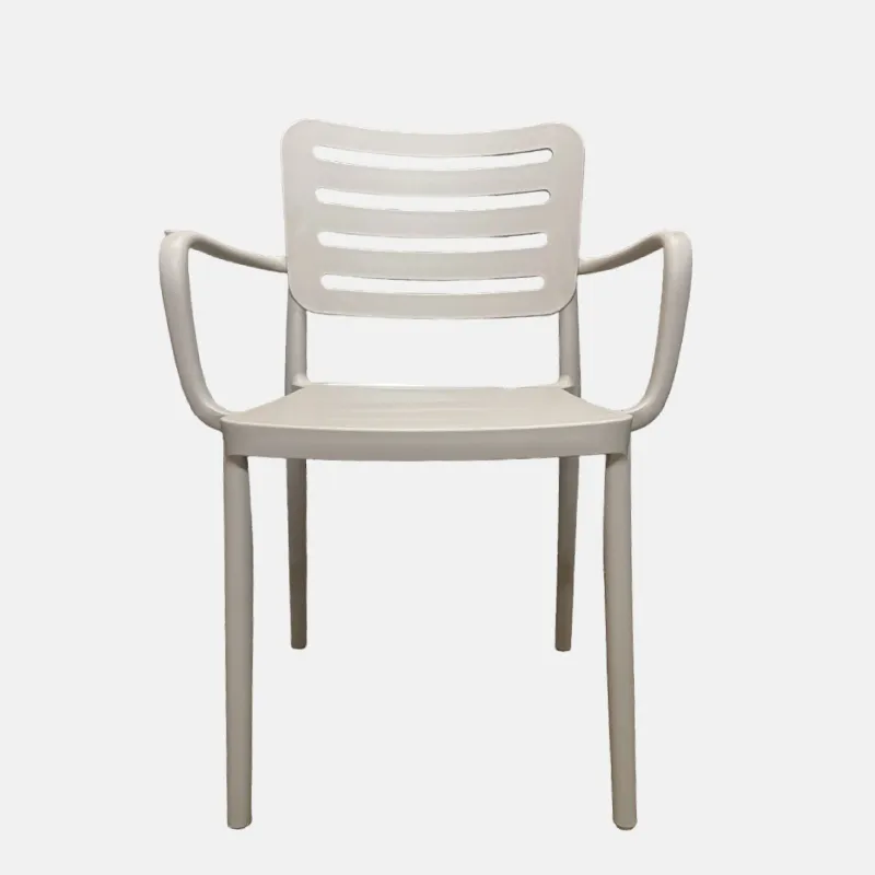 Le design de la chaise inclut des accoudoirs intégrés, offrant un soutien supplémentaire pour les bras et contribuant au confort général de l’utilisateur. Les accoudoirs sont moulés dans la même pièce que le siège et le dossier, créant une apparence homogène et élégante.