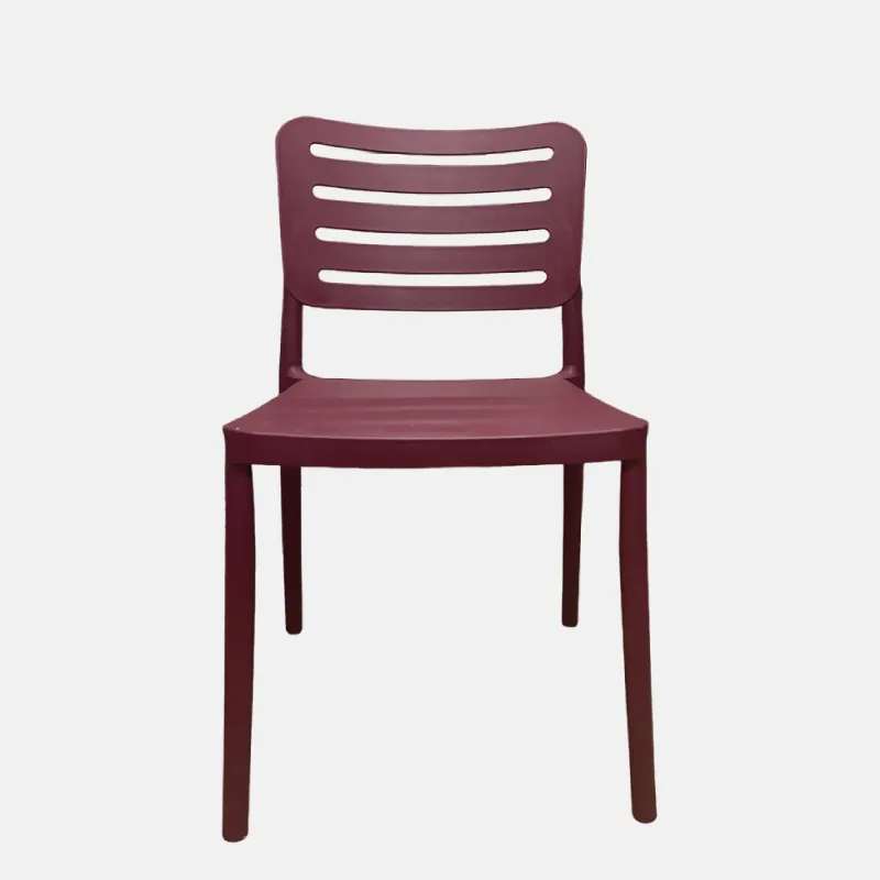 La chaise est constituée d’un cadre en plastique monobloc, sans joints visibles, ce qui lui confère une allure lisse et épurée. Les lignes sont simples et fonctionnelles, avec une assise plane et un dossier légèrement incliné pour un confort minimal mais efficace.