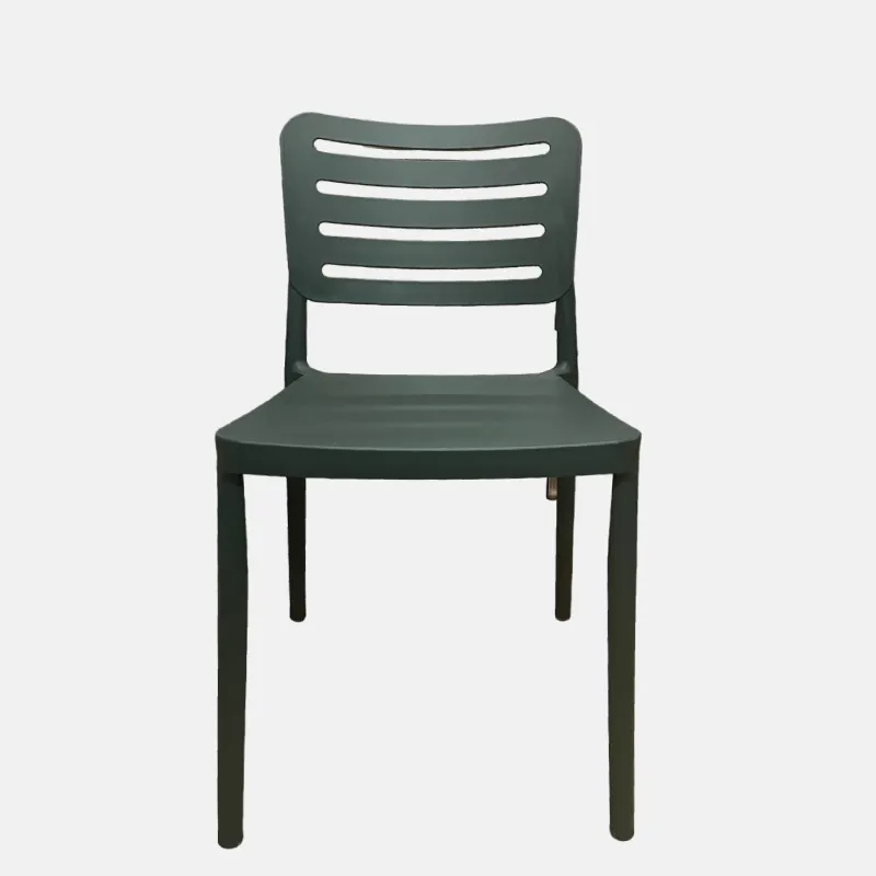 La chaise est constituée d’un cadre en plastique monobloc, sans joints visibles, ce qui lui confère une allure lisse et épurée. Les lignes sont simples et fonctionnelles, avec une assise plane et un dossier légèrement incliné pour un confort minimal mais efficace.