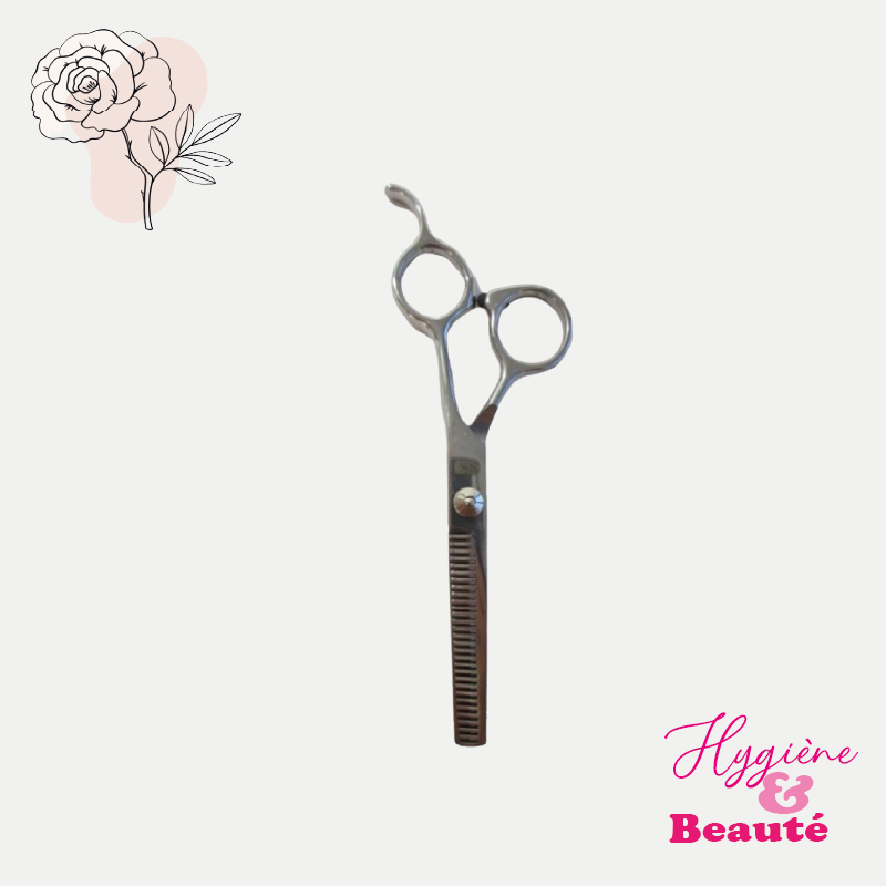 Cet instrument est une paire de cisailles professionnelles de désépaississement capillaire, conçue pour une utilisation haut de gamme dans le domaine de la coiffure. Équipé de lames dentelées, ce ciseau permet d’éliminer partiellement le volume des cheveux sans créer de lignes de démarcation nettes.