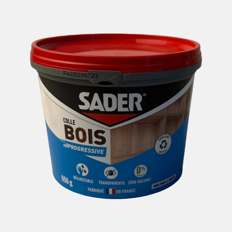 Précise, puissante et repositionnable : la colle bois progressive Sader 650 g, l’alliée des assemblages minutieux et durables !