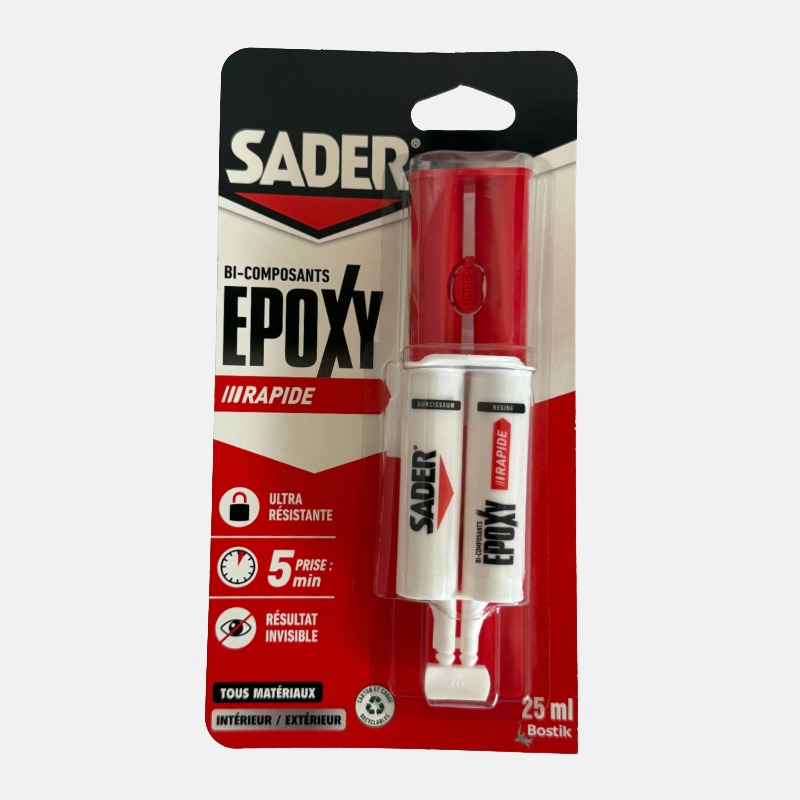 La colle SADER Epoxy Bi-Composants Rapide est une solution d’assemblage ultra-performante, idéale pour les réparations nécessitant une résistance maximale. Sa formule à deux composants (résine + durcisseur) garantit une adhésion durable et solide en seulement 5 minutes. Transparente une fois sèche, elle offre un résultat discret et invisible. Parfaitement adaptée à un usage intérieur et extérieur, elle fonctionne sur tous types de matériaux : métal, bois, céramique, verre, plastique rigide, pierre, etc.