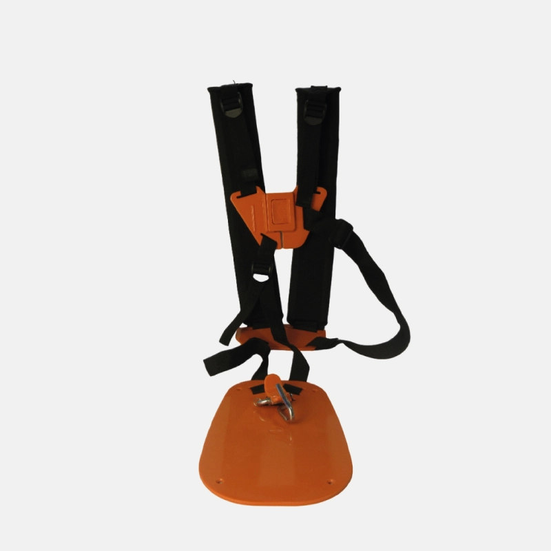 Le harnais est entièrement réglable pour s’adapter à la taille et à la morphologie de l’utilisateur, offrant un ajustement personnalisé. Équipé de points de fixation robustes, il assure une connexion sécurisée avec la débroussailleuse.