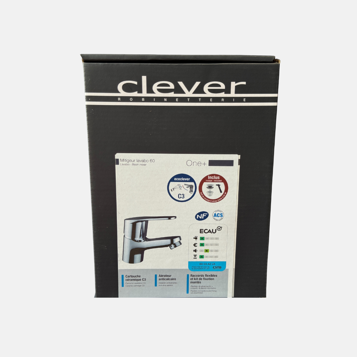 Le mitigeur lavabo Clever One+ 60 mm est conçu pour offrir un confort d’utilisation optimal et une consommation d’eau maîtrisée. Équipé d’une cartouche céramique C3, il garantit un réglage précis du débit et de la température, tout en assurant une excellente durabilité.