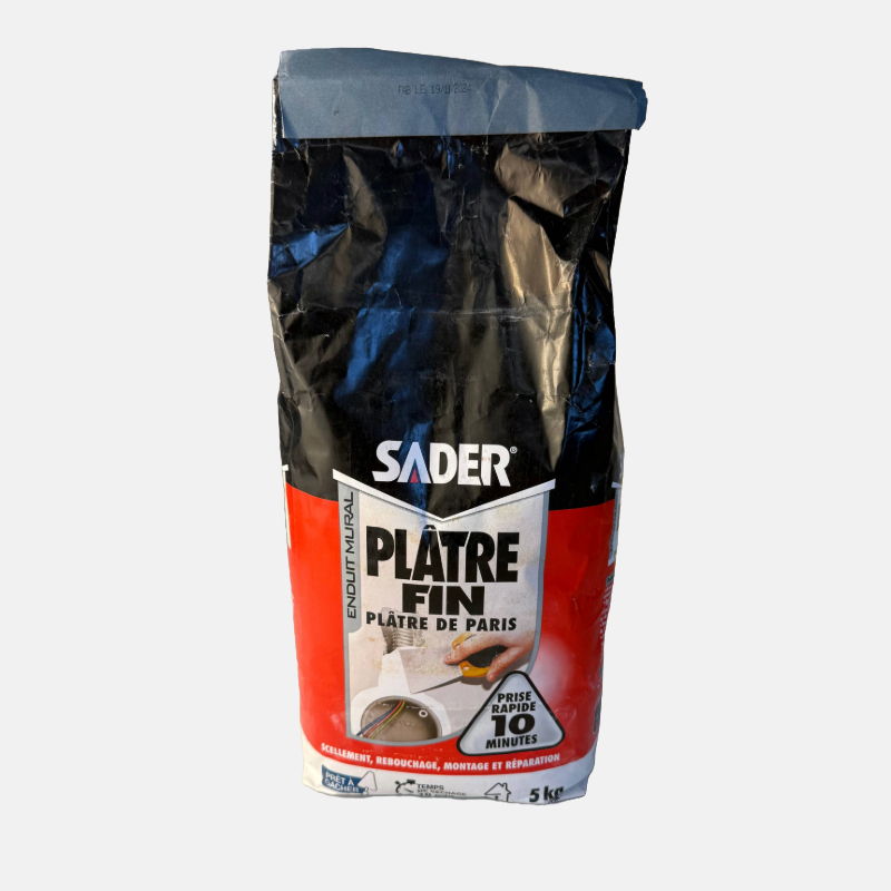 Le plâtre fin Sader 5 kg est un plâtre de qualité, à prise ultra rapide (environ 10 minutes) : parfait pour le scellement, le rebouchage de grosses cavités ou le montage de cloisons intérieures. Sa formule en poudre est facile à gâcher et convient à de nombreux supports intérieurs tels que le plâtre, le béton cellulaire, le ciment, la brique ou le bois. Avec son grain très fin, il offre une finition dure, résistante et prête à peindre ou enduire. Adapté aux travaux courants sur murs et plafonds en intérieur uniquement. Certifié émissions A+, pour un usage sain et sans solvant.