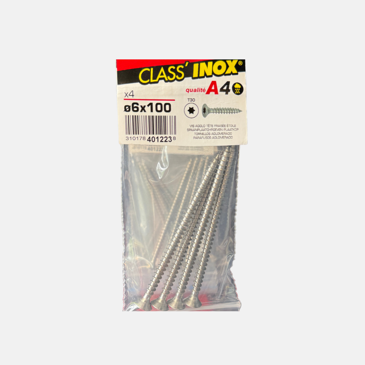 Vis aggloméré inox A4 Ø6 x 100 mm idéale pour la fixation du bois et des panneaux agglomérés. La tête fraisée assure une finition propre et affleurante, tandis que l’empreinte étoile permet un vissage précis et efficace.